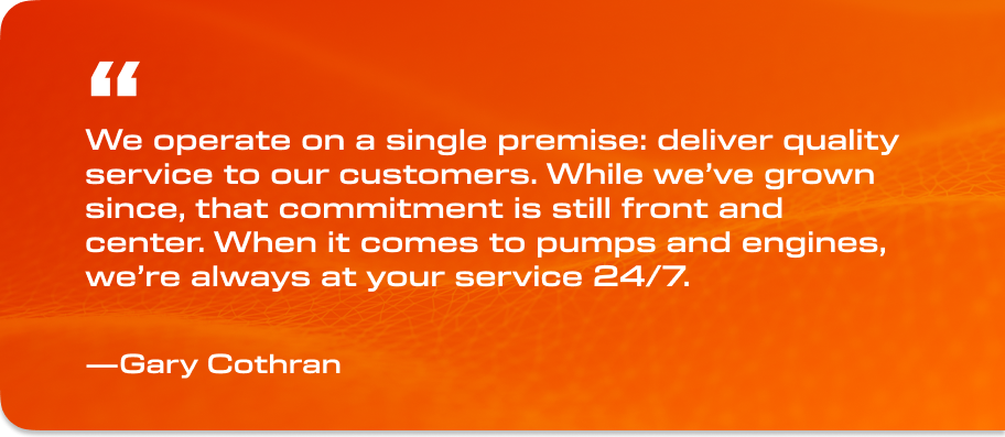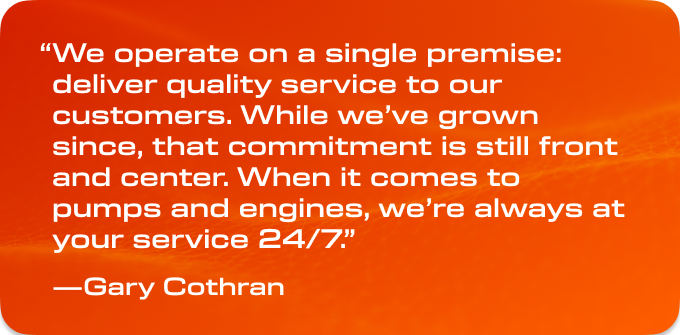 When it comes to pumps and engines, we’re always at your service. And we back our service up with the resources to keep everything flowing smoothly.