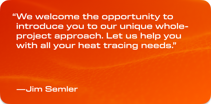 We understand the critical role that heat trace systems play in operational reliability. System selection, design, coordination, and installation tailored to the unique characteristics and circumstances of each project are critical to the long term, trouble-free operations of the heat trace system.